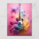 Electric guitar in colored cloud postcard