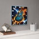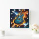 Vibrant electric guitars burst into flames, showcasing brilliant colours and intricate designs in a dynamic display of music and creativity.