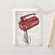 Electric Hand Mixer features a vintage kitchen blender in red with white, aqua and black trim over a white distressed background.