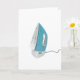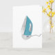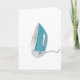 A household item that most of us have is an iron. This design is an electric iron that is standing up and ready to be used. The iron is blue in color with the traditional metal strike base. This electric iron design looks great on these greeting cards