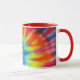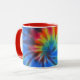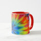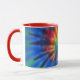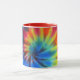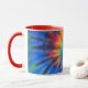 White and red 11 oz. combo mug with an image of electric rainbow tie dye. See matching espresso cup, candy jar, flask, pitcher, paper plate, teapot and coasters. See the entire Psychedelic 60s Mug collection in the FOOD/BEV | Dishes section.