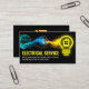 An all black cover features an electrical lightning that powers up a yellow home lightbulb. Near the base you have the business name in bright yellow and its contact details.