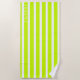 Classic beach towel with cabana stripes in electric lime (#ccff00) and white. Personalise it now with a name, monogram, or logo. Designed by Alma Wad. The bright and energetic lime green reflects Gemini's lively and curious nature, capturing their youthful spirit and versatility. Consider this when selecting a colour.
