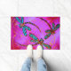 Gorgeous bright blue winged dragonflies flit on an electric pink background. Customise with text to make the perfect welcome mat.