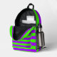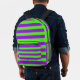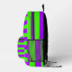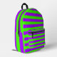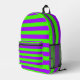 Backpack all over print cut sew style storage bag printed with Electric Psychedelic Purple And Harlequin Green horizon and vertical line stripes artwork design illustration by TheFabricSeal at Zazzle.com #Zazzle Made https://www.zazzle.com/store/thefabricseal.