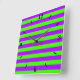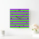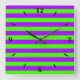 Square Wall Clock, wall art decoration and home furnishing decor accessory printed with Electric Psychedelic Purple And Harlequin Green horizon and vertical line stripes artwork design illustration by TheFabricSeal at Zazzle.com #Zazzle Made https://www.zazzle.com/store/thefabricseal.