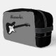 Electric rock guitar logo custom toiletry bag for guitarist or music lover. Cool pesonalized name bathroom accessory. Fun item for guitar player, music teacher, music school teacher, musician, artist, performer, student, shop owner etc. Elegant script typography template. Modern instrument design with name. Black and white or custom colours. Great present for Father's Day or Birthday.