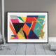 An electrifying burst of modern abstract design, this geometric art print features a bold mix of jagged triangles, intersecting lines, and vivid colour blocks in yellow, red, black, teal, and magenta. The high-energy composition creates a sense of movement and modern rebellion, perfect for contemporary interiors and artistic workspaces.