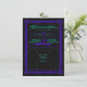 This bold and bright electric teal, purple and subtle black damask wedding accommodation insert card has a vintage, old hollywood feel with old-fashioned letter design, including elaborate script elements, a decorative banner, stars and a swirly ampersand. The fancy invitation is inspired by both vintage design and stylish posters. The text reads: "You're Invited to the wedding reception of [customisable name] & [customisable name] [customisable date] [customisable time]. Please Join Us for an Unforgettable Celebration". Further personalise the invitation with the reception information and address, in the box with dotted border.