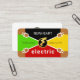 At its centre point is a gold lightning bolt logo you can use. At the top sits your prestigious name with the oversize business name "electric" near the base of the card. Towards the left and right sides of the card are two slogan captions which can advertise your business. You can change these captions and the business name to suit your own service needs.