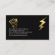 Overleaf, a gold lightning bolt is at the upper right corner. Card details are over on the left with a home bulb circuit logo you can use. This is followed by the business name, contact details and a slogan caption option which you can change.