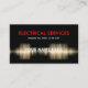 A pulsating electric current streaks across the face of the card powering up your prestigious name. At the top is the business name "ELECTRICAL SERVICES" alongside the contact details.
