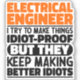 Funny Electrical Engineer Sayings "Electrical Engineer I Try To Make Things Idiot Proof But They Keep Making Better Idiots". Grab this Funny Electrical Engineer design as a funny gifts for an awesome mum, dad or friend.