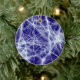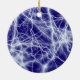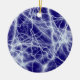 Electrical discharge of bolts of lightning against a dark blue background ceramic round double sided ornament
