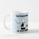 Electrical services cartoon on a mug. Add your company name & phone number. Ideal for electricians and anyone working in electrical services. Blue background.