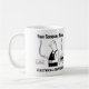 Electrical services cartoon on a mug. Add your company name. Ideal for electricians and anyone working in electrical services. Electrician mug.