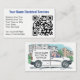 Electrical Services business card with fun image of an Electrician's white van. Add QR Code for your website.