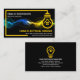 A yellow electrical circuit frame is powered by an electrical lightning that zaps thru a home bulb. Just below the bulb is the business name and the contact details. Towards the upper left corner of the card lies your prestigious name and job title.