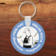 Electrical business Keyring. Electrician and electrical repairs illustration in a fun cartoon style. Man is looking at various wires as he rewires a property. Personalise it with your choice of company name and contact number.