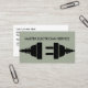 Modern simple electrician business card template in a bold and simple two side design with graphic image of an electrical cord and plug with your business name featured on the front and your contact information laid out on the flip side. Created for an electric contractor or independent electrician service.