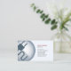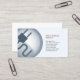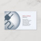 An enlarged grey glossy icon of a power cord forms the main image on this electrician business card. Your name and details appear on the right, over a simple white background. Customise this card immediately with your name and details.
