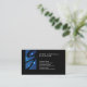 This elegant electrician skilled trade business card design features a simple colour tab that runs from the top left of the card and ends slightly after the halfway point. The tab has a blue circuit lights background. Your monogram letter appear in a black script letter over this colour tab. Your name, title and contact details appear to the right of this colour tab, over a black background. Perfect for construction, building, diy, skilled trade, professional themes.