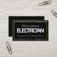 An all black cover features a creative "ELECTRICIAN" signage that has a drop shadow. Your prestigious name is at the top of the card with the contact details near the base of the card.