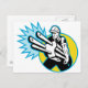 retro style graphic design illustration of an Electrician or power lineman carrying a plug set inside a circle with sparks isolated on white