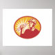 Illustration of an electrician power lineman lineworker holding lightning bolt done in retro style set inside ellipse.