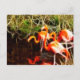 A pack of flamingos walking in a river all bright orange getting ready to turn pink. that have been Photoshop filter added to it.