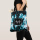 Electrifying blue sparkly triangle flames Monogram Tote Bag