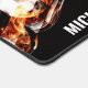 Personalise with your initial Electrifying orange sparkly triangle fire flames. Orange, black and white triangle geometric mesh with abstract smoke and sparkles print.