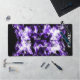 Personalise with your name. Electrifying purple sparkly triangle flames. Purple, black and white triangle geometric mesh with abstract smoke and sparkles print.
