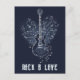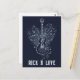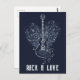 This dark blue postcard design features a sketch of an electro-guitar placed in front of a heart made of musical notes. There is a customisable message "rock n love". This design is great for musick and rock & roll lovers.