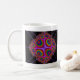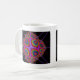 A design featuring psychedelic multihued irregular concentric medallions within a quadrilateral veined framework.