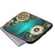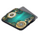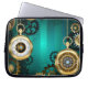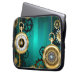 Jewellery, gold watch with a gold chain and keys on a green textural background. Steampunk style.