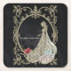 Elegance in gold and black. Captivating composition that combines elegance and mystery. The focus is on a woman in a flowing dress, her silhouette glowing in brilliant gold against a deep black background. The raven symbolises mystery and intelligence and reinforces the mystical atmosphere of the design. Nearby blooms a red rose, whose vibrant colour represents passion and beauty. A combination of darkness and light, elegance and mystery