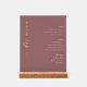 This elegant bar menu design exudes a sophisticated and refined style, perfect for a wedding reception or upscale event. The soft mauve background paired with delicate cursive typography creates an inviting yet classy atmosphere. Featuring categories like beer, wine, and spirits, the layout is both functional and aesthetically pleasing, ensuring guests can easily navigate their drink choices while enjoying the ambiance. Its minimalist approach allows it to blend seamlessly into any decor, making it ideal for couples aiming for a timeless and polished look on their special day.