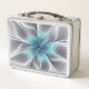 Elegance Modern Blue Grey White Fractal Art Flower Metal Lunch Box