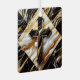 A ceramic pattern featuring a striking black and white marble design adorned with intricate gold accents, exuding sophistication and luxury.