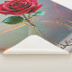 This design features the graceful outline of a minimalist vase cradling a vibrant rose, symbolizing the profound beauty found in simplicity. The delicate interplay of light colors in the background enhances the quiet drama of the solitary flower, while subtle gold accents add a touch of sophistication, creating a serene yet striking visual statement.