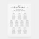 Classic Calligraphy Script Wedding Seating Plan. Welcome sign. Personalised Simple Minimalist Seating Chart for 100 guests (10 tables). Just click the customise further link, shown under the text personalisation area on the right, and choose your custom colour background. This sign poster template makes it fast and easy to create stunning additions to your wedding decor. Signs can be enlarged, there are many sizes to choose from, as well as options for custom framing and matting.