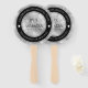 Celebrate the 10th wedding anniversary with these commemorative hand fans! Elegant black and white serif lettering with hexagonal confetti on a tin foil background add a memorable touch for this special occasion and milestone. Customise with the happy couple's names, years of marriage, and congratulatory messages for their tin anniversary.