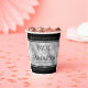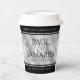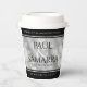 Celebrate the 10th tin wedding anniversary with these stylish paper cups! Elegant black and white serif lettering with hexagonal confetti on a tin foil background add a memorable touch for this special occasion and milestone. Customise with couple's names, years of marriage, and congratulatory messages. Reverse shows identical design.