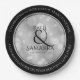 Celebrate the 10th wedding anniversary with these commemorative paper plates! Elegant black and white serif lettering with hexagonal confetti on a tin background add a memorable touch for this special occasion and milestone. Customise with the happy couple's names, and add dates for their tin anniversary. Wraparound text on the rims of the plate may be personalised with special congratulatory messages, or used as is.