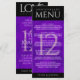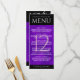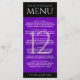 Add sophistication to 12th silk wedding anniversary celebrations with this dinner menu, which features elegant lettering on luxurious purple silk and black backgrounds. Customise with couple's names, dates of marriage, venue details, menu items, and congratulatory messages.