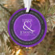 Celebrate the 12th silk wedding anniversary with this commemorative ornament! Elegant white serif lettering on a luxurious purple silk background add a memorable touch for this special occasion and milestone. Customise with the happy couple's names, years of marriage, and personalised congratulatory messages on the rims. Reverse shows identical design. Use as is, or replace with a photo of the couple. This design is optimised for the circle shape.