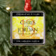Celebrate the 13th citrine wedding anniversary with this commemorative ornament! Elegant black and white lettering with hexagonal confetti on a yellow-orange mosaic background add a memorable touch for this special occasion and milestone. Personalise with couple's names, wedding dates, and congratulatory messages.