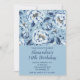 Elegant 19th birthday invitations Floral Blue rustic watercolor
