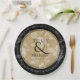 Celebrate the 1st wedding anniversary with these commemorative paper plates! Elegant black and white serif lettering with hexagonal confetti on an aged paper background add a memorable touch for this special occasion and milestone. Customise with couple's names, date of marriage, and personalised messages on the rims for their paper anniversary.